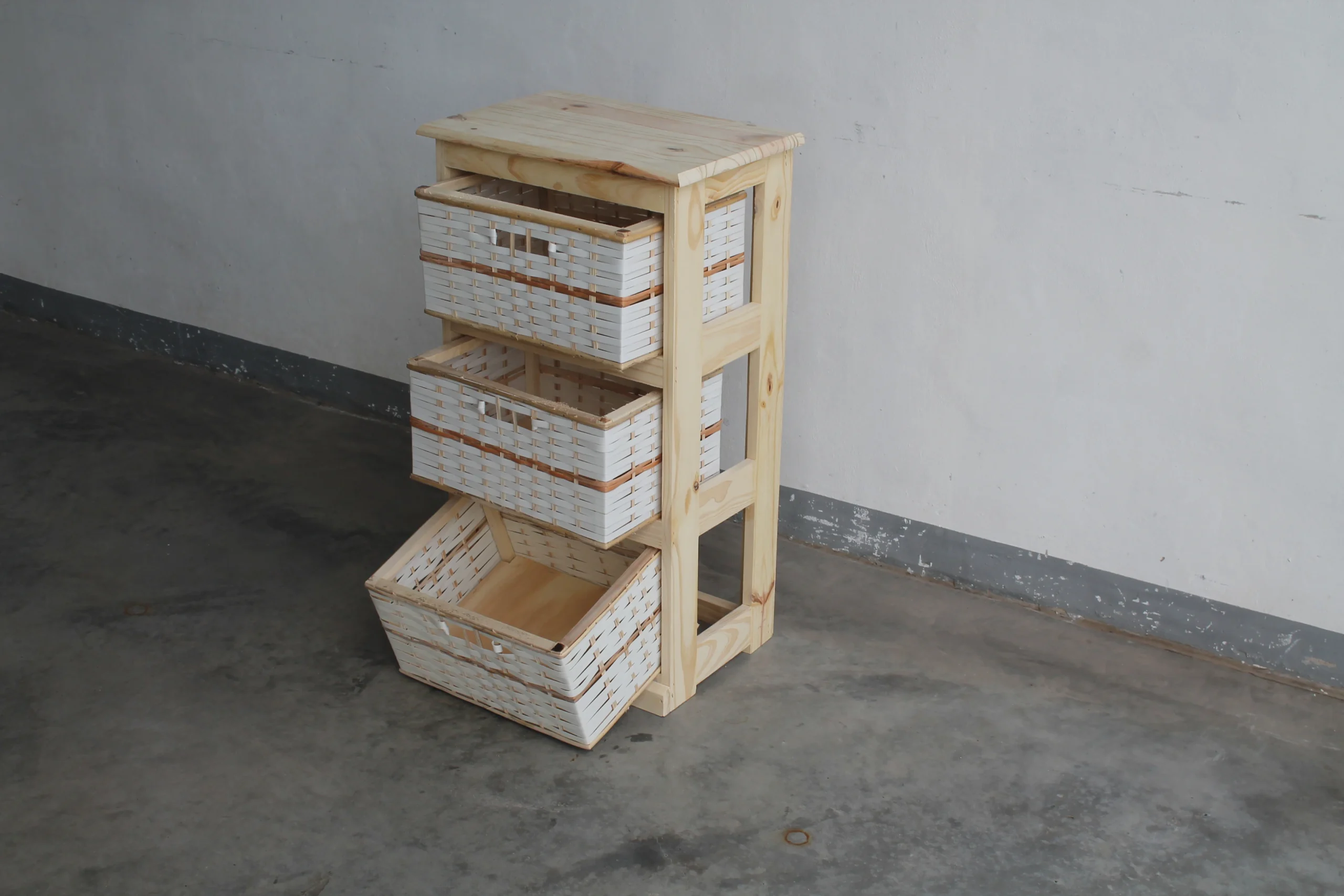Este práctico organizador combina funcionalidad y diseño en un tamaño compacto. Incluye dos canastos amplios, ideales para guardar y mantener en orden diferentes objetos del hogar. Su estructura permite un fácil acceso y está pensada para adaptarse a cualquier ambiente, ya sea en dormitorios, baños o espacios de trabajo.